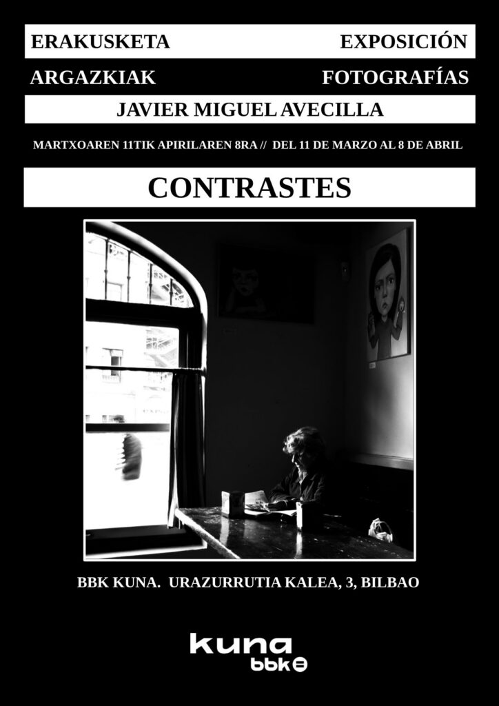«Contrastes» es una selección de imágenes en las que Javier Miguel Avecilla invita al espectador a detener la mirada en lo cotidiano, en lo cercano, en esos rincones del camino diario, acentuadas por una alteración de la luz, llevando el contraste al máximo y creando estampas que nos acercan al movimiento pictórico del claro oscuro.